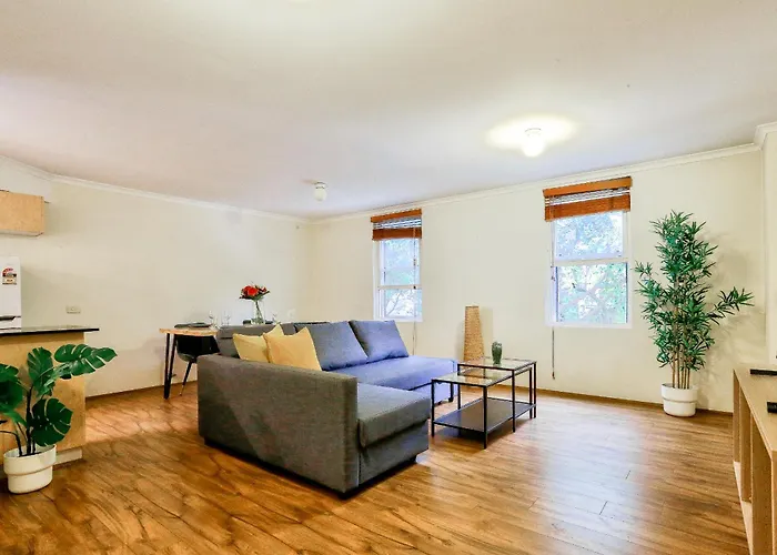 The 2-room Accessible 2 Bedroom Apartment Chippendale offers easy access to such tourist sites as The Corner Co-operative Art Gallery, located merely 5 minutes' stroll away. Staying in this spacious apartment, nestled just 6 minutes' stroll from White Rabbit Gallery, guests can relax on a sunny patio.